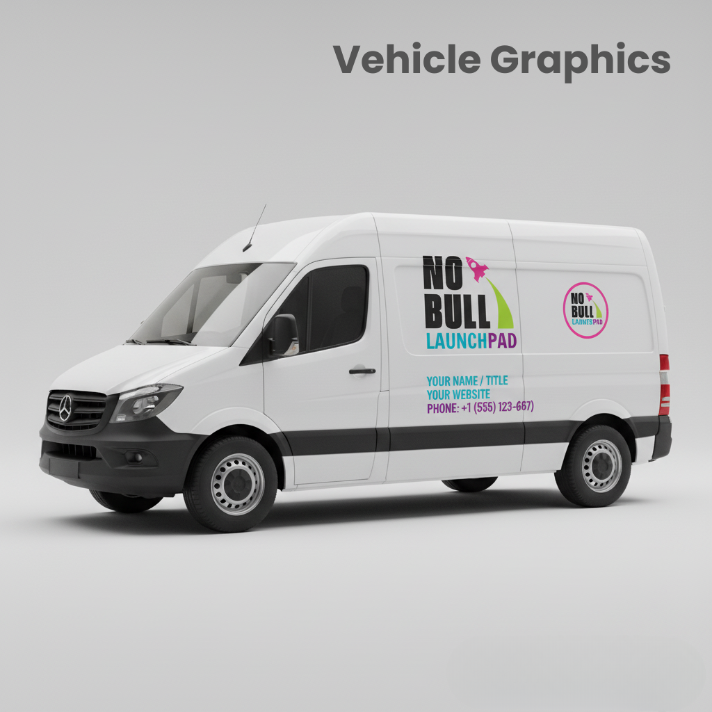 – Design mockups for one vehicle type- Print-ready artwork for your signage/vehicle wrapping supplier